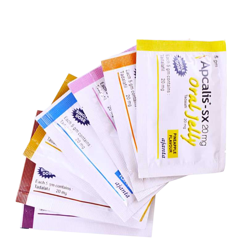Tato gelová sáčka Apcalis Oral Jelly s ovocnými příchutěmi nabízejí rychlou náhradu za tabletovou verzi Tadalis SX. Obsahují stejnou účinnou látku a stejné množství. Výhodou je, že nástup účinku je rychlejší.